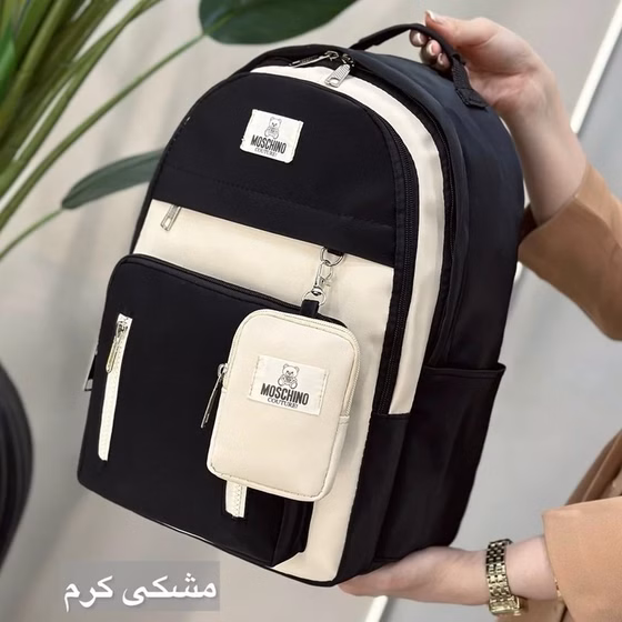 کوله پشتی دوتیکه مشکی کرم جنس نانسی سایز بزرگوجادار